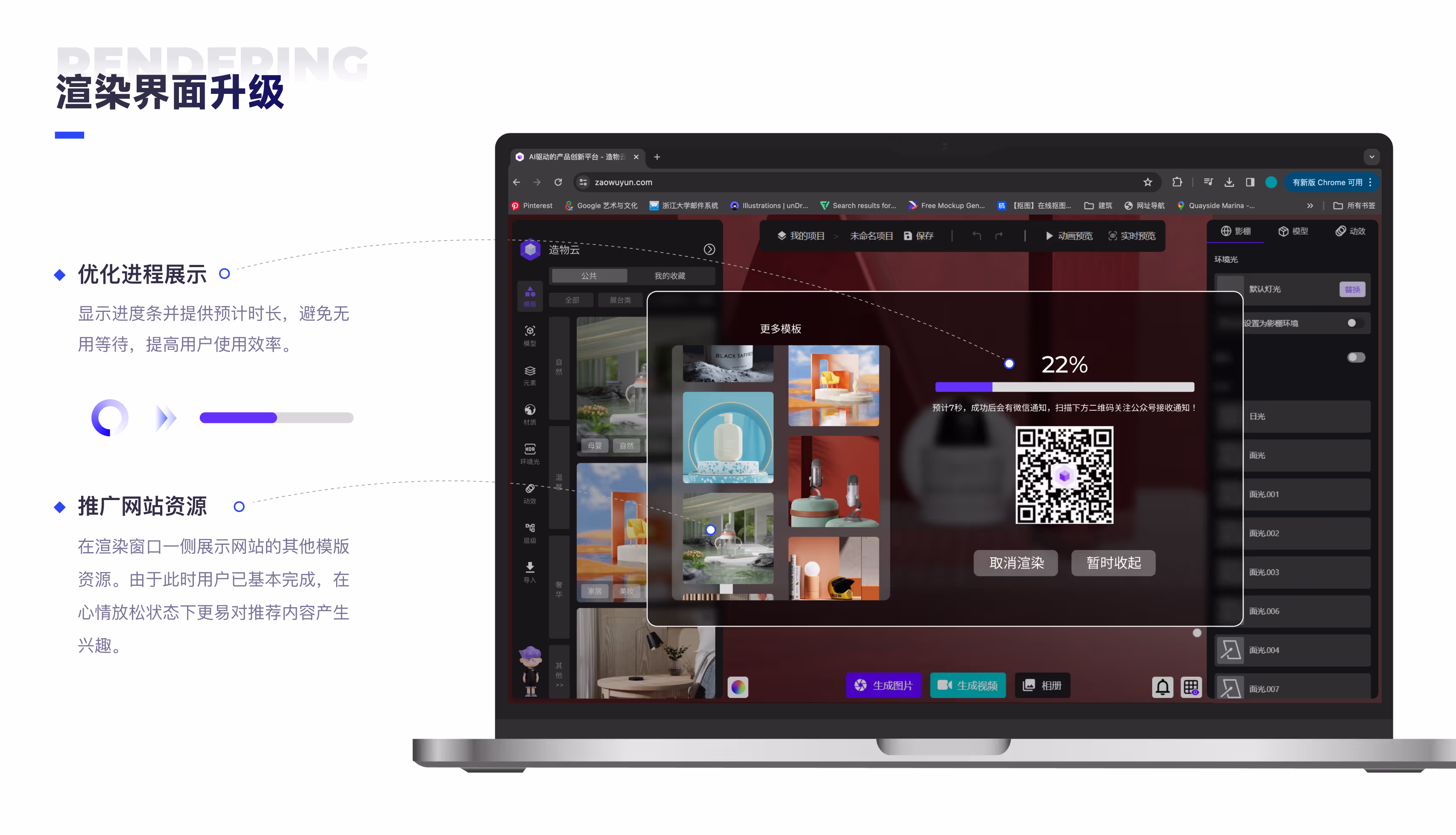 造物云是中国领先的在线三维建模渲染平台,我们团队与其深度合作对官方网站进行优化升级。我们系统地梳理了从企业发展战略到具体页面交互细节,覆盖了用户从访问首页到完成作品的全流程体验。通过深入分析用户行为与业务需求,我们重新设计了网站的信息架构与界面设计,提升了核心功能的易用性与操作效率。优化后的网站在用户留存率、任务完成时间等关键指标上均实现了显著提升。